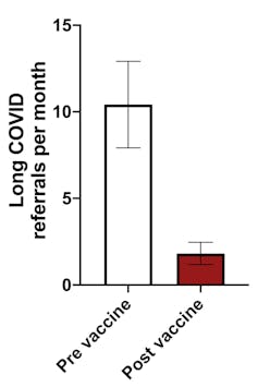 While it’s difficult to pin down the degree to which vaccination reduces long COVID symptoms, we believe it has played a key role in the reduction in new referrals we’ve seen in our clinic. The fact that other groups, using different measuring techniques, have also observed this association is very reassuring.