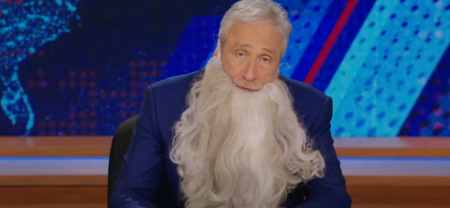 Stewart quickly discards his own beard, mocking his facial hair and quipping: “I was kidding! Energy! Imagine me with a white beard.”