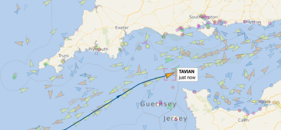 Tracking data showed it sailing around 25 miles north of Guernsey on Thursday afternoon, and making its way towards the Gulf of Finland.