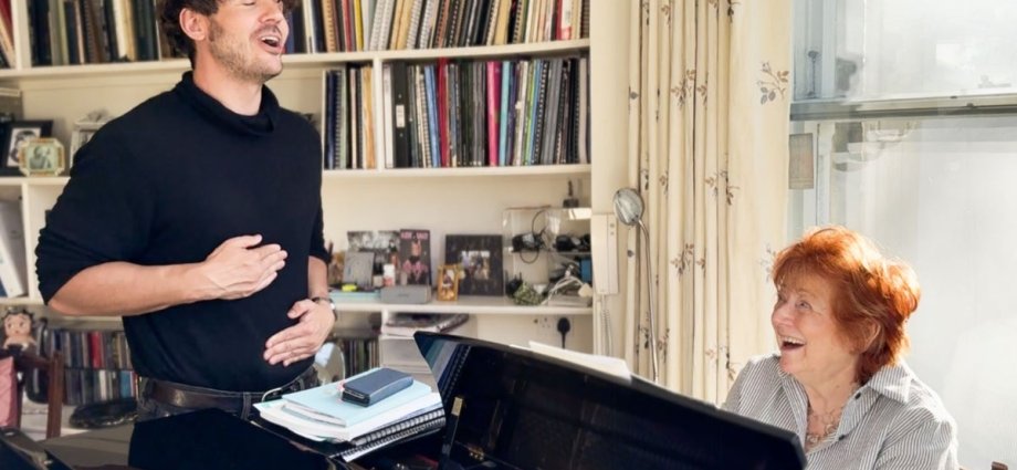 In that lesson, she has me supine on the floor, my hand on my stomach, learning how air moves. “There’s no point in lying,” she tells me. “If something’s not working, I’ll tell you. And if something’s there, I’ll tell you that, too.” At the end, she asks me to sing. Anything I like. Convinced I possess a slinky falsetto, I choose “I Believe in a Thing Called Love” by neo-glam-rockers The Darkness. “That,” says Hammond afterwards, “reminded me of the time Dame Edna Everage stood at that very piano. Did you mean it to be comic?”