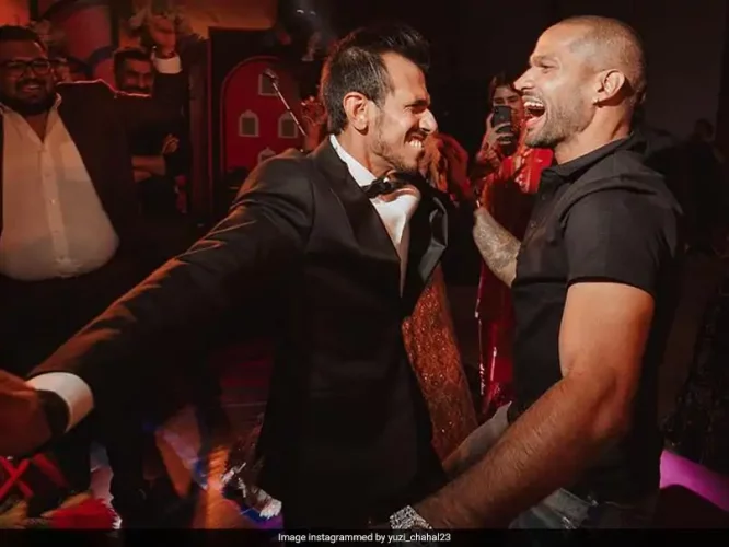 Yuzvendra Chahal posted pictures from his Sangeet ceremony that featured teammate Shikhar Dhawan.© Yuzvendra Chahal/Instagram Yuzvendra Chahal on Thursday took to Instagram to share a few pictures from his Sangeet ceremony where he and his wife Dhanashree Verma can be seen dancing together. The pictures shared by the leg-spinner also featuredContinue Reading