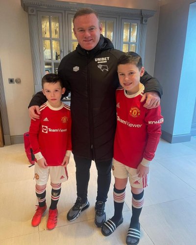 Rooney proud of sons Kit and Kai as they pose in Man Utd kits before matches